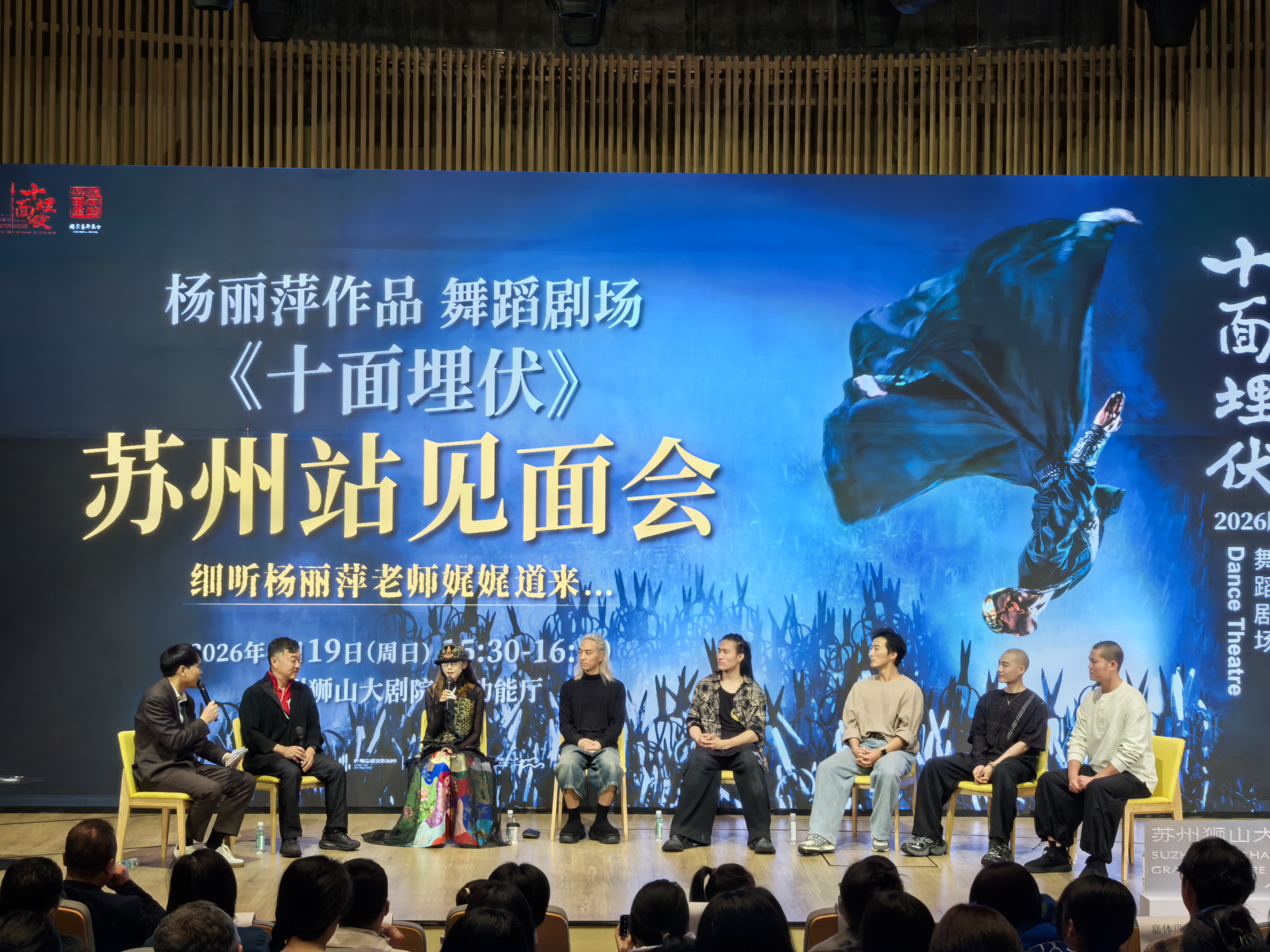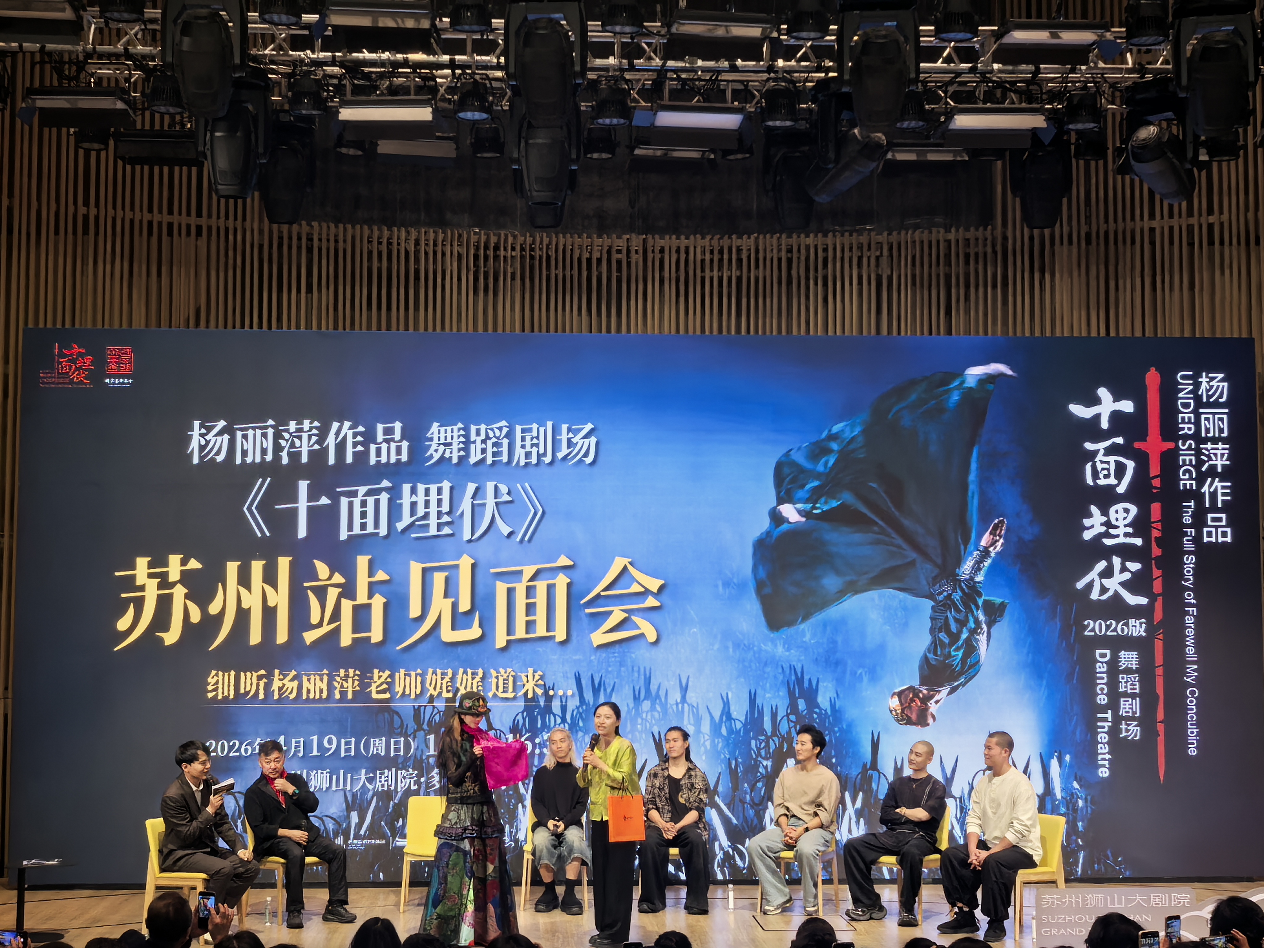 4月24日—4月25日,杨丽萍作品 2026版舞蹈剧场《十面埋伏》即将登陆苏州狮山大剧院。今天(4月19日)下午,杨丽萍作品 2026版舞蹈剧场《十面埋伏》苏州站见面会在苏州狮山大剧院举行,艺术家杨丽萍携手《十面埋伏》制作人王焱武及剧中主演与苏州观众零距离面对面,分享从排练场到舞台的幕后创作故事。